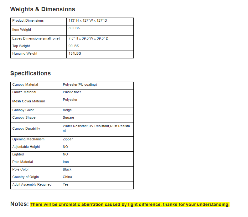 Manufactured from a trusted factory, the sturdy metal frame is coated in a black powder coated finish resistant to rusting, erosion, and insects. Complete with zippered polyester mesh netting with PU coating, the inner transparent mesh can cover all sides of the gazebo while allowing for a gentle breeze to pass through, or you can utilize the outer UV-proof curtains to block out harmful rays.
