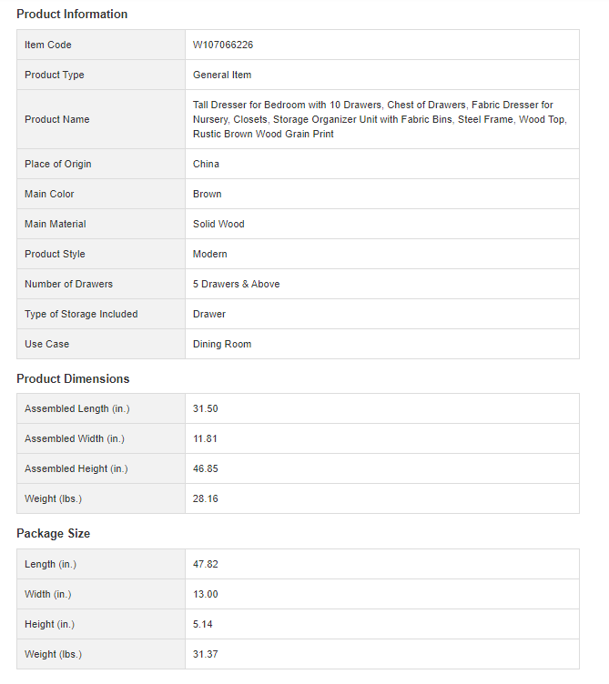 Overall Dimension: The dresser measures 31.5" L x 11.8" W x 46.5" H. The tower of drawers comes with detailed instructions and all hardware needed for installation, and is easy to assemble and disassemble.