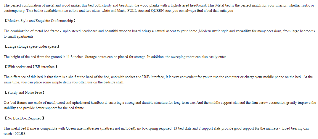 Queen Size Metal Platform Bed Frame with Upholstered headboard ,Sockets, USB Ports and Slat Support ,No Box Spring Needed,Black